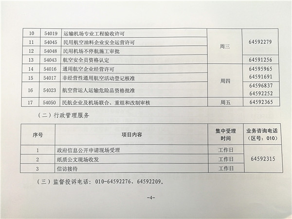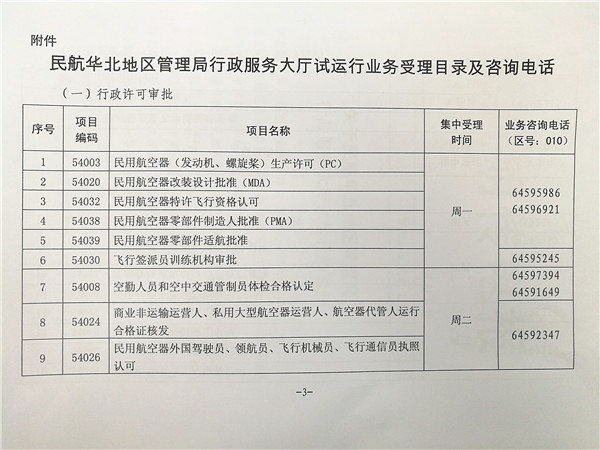 据服务大厅工作人员介绍,需要办理相关业务的人员,在工作日的每天上午8:30-11:30,下午13:30-16:30可以到民航华北局办公楼正门向南100米服务大厅办理即可。在试运行期间暂时实行集中受理与日常受理相结合的试运行模式,在运行一段时间后,将根据试运行情况,进一步优化服务流程,并逐步实现各类申请事项的随到随受理。