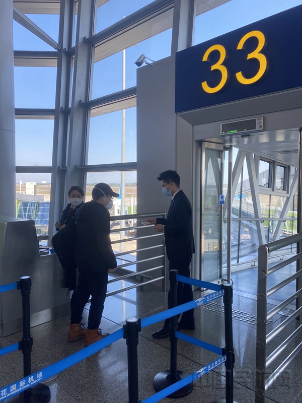 卢丽雯为国际联程旅客办理值机手续
