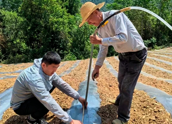 为有效缓解旱情,工作队积极筹措物资,紧急调配了1000升储水罐32个、浇水软管1600米、阀门喷头32套,采用拉水、罐蓄、管浇的方式,为烟苗以及玉米、红薯苗输送“保命水”,确保农作物在干旱环境下得以存活,为后续生长争取宝贵生机。