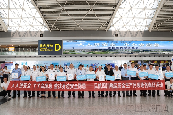 《中国民航报》、中国民航网 记者何丹 通讯员冯洁爽 报道:6月16日,民航四川监管局组织西南空管局、四川航空、成都航空、西藏航空、国航西南、东航四川、南航四川、长龙西南、双流机场、四川机场地服和机场公安局等11家单位在成都双流国际机场T1和T2航站楼开展了“安全生产月”现场咨询日活动。