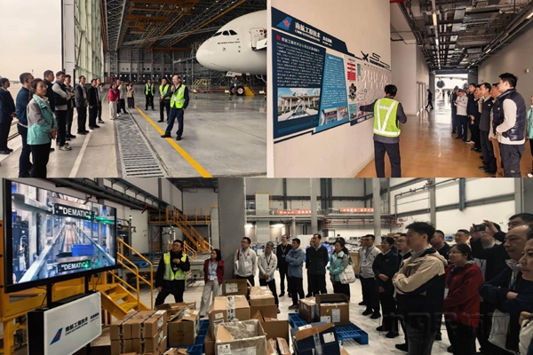 随后,学员们前往南航大兴机库 —— 这座亚洲跨度最大、亚洲单体规模最大的维修机库,建筑面积近4万平方米,跨度超400米,下弦高度30米,最多可同时容纳2架A380、3架B777和3架窄体机并行维修。现场3架空客A380飞机正在检修的震撼场景,让学员们深刻领略了中国民航世界级维修保障能力;在智能化航材库,学员们详细了解全自动化仓储、物联网管理体系,见证南航为大兴机场及北方片区打造的坚实航材保障屏障,深入学习民航维修领域的全链条管理经验。