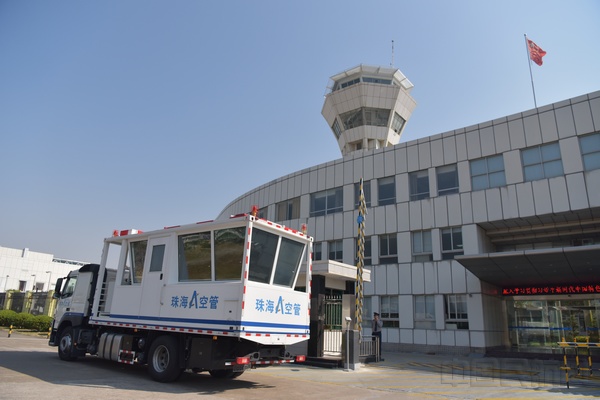 珠海空管站是全国民航空管分局站中首家引进整装一体式塔台指挥车的单位。7月4日,民航珠海空管站对已完成设备调试的塔台指挥车进行了验收,为做好AG600首飞保障,技术人员多次为指挥车进行了运行检测和调试。新引进的这款塔台指挥车机动性能强劲,设备配置齐全。塔台指挥车还采用光纤传输和微波传输两种数据传输方式,只要在塔台可视范围,均可实现数据传送,塔台指挥车的移动性能将得到更好拓展。