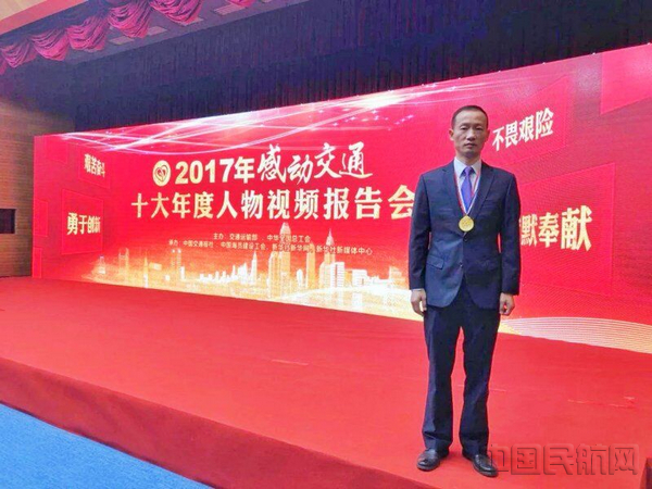 《中国民航报》、中国民航网 记者李芳芳、郑阳 报道:在“五一”国际劳动节来临之际,深圳空管站塔台管制室主任艾国胜荣获“2017年感动交通十大年度人物”称号,成为民航唯一当选代表。“2017年感动交通十大年度人物”评选由交通运输部和中华全国总工会共同举办。