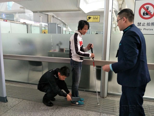 据悉,盲道全长约9.7米,宽约0.6米,自通道门起铺设。航空安全保卫部工作人员在铺设时进行了二次补胶,确保材料与地面粘贴牢固,同时在距地面约0.9米处沿墙壁安装了长约9.2米的扶手栏杆,方便盲人旅客行走。