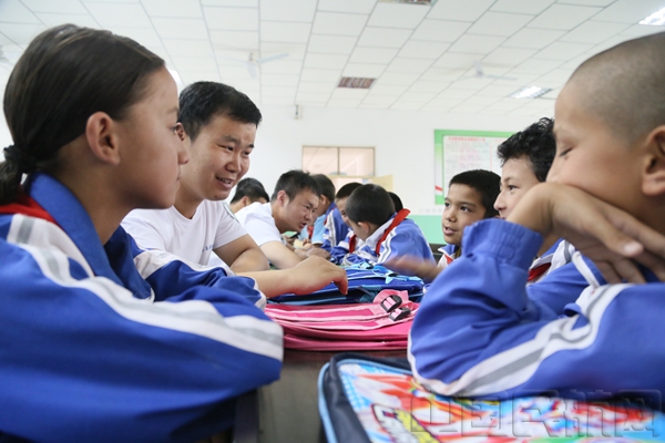 活动中,且末机场的员工们与巴格艾日克乡小学同学们首先进行了自我介绍,在大家相互了解的基础上开始了本次活动的精彩内容。为了更加近距离的跟同学们心连心,玉缘班组成员们与同学们一起分成了四个交流小组,小组成员们亲近的围坐在一起,好似家人般的面对面聊聊天,诉说情谊。