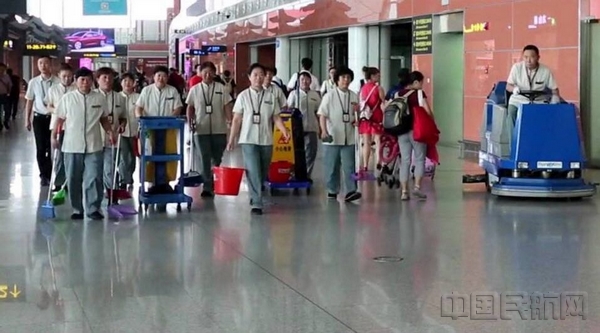 机场是城市的第一窗口,作为沈阳机场航站楼管理部的保洁员,他们肩负着航站楼内24.8万平方米的清洁扫保工作。每天当人们还在梦中酣睡时,他们便已伴着朝霞、迎着晨曦踏上了工作岗位,开启了一天的忙碌工作。为了给中外旅客提供舒适洁净的乘机环境,从早6时至晚8时,他们一干就是14个小时,期间他们不间断的对各自责任区进行作业清扫,时常汗水浸湿了他们的衣裳,却丝毫没有消减他们规范的工作流程、抖擞的精神状态和踏实的工作态度,他们用最娴熟的标准动作完成了看似普通、平凡,实则枯燥而又重要的工作任务。每天航站楼内数以万计的过往乘客,每天重复千万次的规范操作,若是遇上航班延误,他们更是加班加点,自觉延长工作时间。但对于这些,他们从不抱怨与计较。勤恳敬业、尽职尽责是他们的职业信条,他们用勤劳的双手确保了航站楼的整洁通亮、窗明几净,他们用文明的言行和敬业的精神擦亮了沈阳这座城市的窗口。