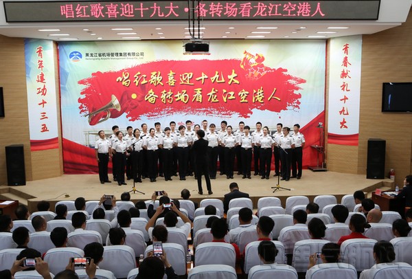 中国民航网 通讯员孙阳、韩宇薇 报道:9月26日上午,黑龙江机场集团举行“唱红歌喜迎十九大·备转场看龙江空港人”红歌演唱比赛。来自黑龙江机场集团直属团组织15支代表队参加了比赛。黑龙江机场集团党委书记罗辑、财务总监林杰、副总经理禄建恒观看了演出,并为获奖代表队颁奖。