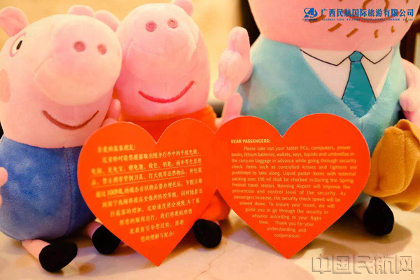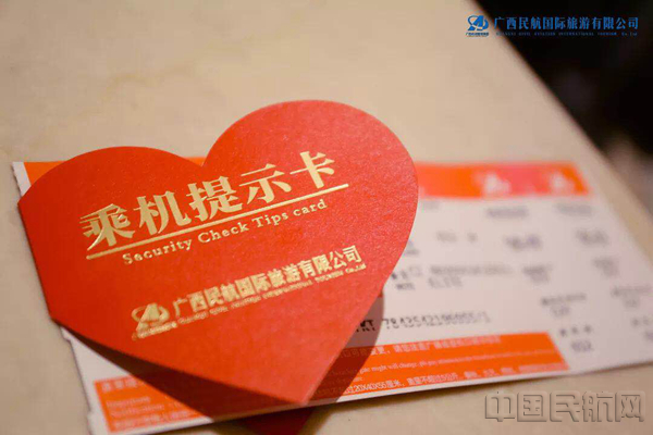 航旅公司工作人员在为旅客办理乘机手续时,会将“乘机提示卡”粘贴在登机牌上,卡片上用中英文双语对旅客在过安检时需注意的事项,如:需特别检查的物品、违禁物品、特殊过检安排等进行提醒,让旅客在候机时就能提前做好准备,真正做到了“服务前移、提醒前移、准备前移”。“乘机提示卡”的投入使用是航旅公司在长期大量的服务经验积累和案例分析后研究制定的全新举措,该项举措有效减少了旅客因过检时碰到突发状况而影响正常登机的情况,对提升南宁机场航班放行准点率和旅客服务体验有着积极推动作用。