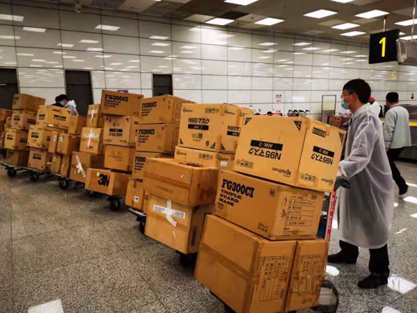 郑州机场旅客服务部工作人员协助航空公司转运防控物质