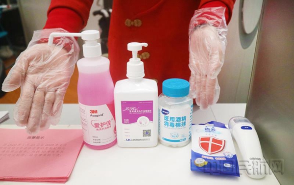 同时,上海两场的全部问讯柜台、行李寄存柜台、打包柜台、手推车服务柜台、安检服务台,均向旅客提供消毒免洗洗手液,航站楼公共区域卫生间洗手台则全部使用医用消毒洗手液,机场问讯柜台还免费提供酒精棉球、消毒湿纸巾等防护用品。