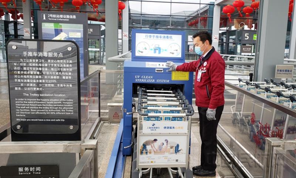 虹桥机场的手推车自动消毒设备(以上图片由上海机场供图)
