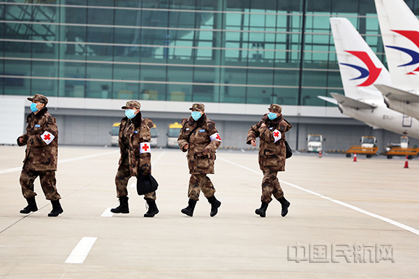 中国民航网 通讯员杜红霞、陈晓东、李伟、张蒙、刘振威 报道: 2月13日上午,11架空军运输机载947名医护人员和74吨医疗物资抵达武汉天河机场。这是我国国产运-20大型运输机首次参加非战争军事行动,也是空军首次成体系大规模出动现役大中型运输机执行紧急大空运任务。