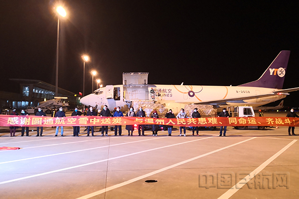 《中国民航报》、中国民航网 记者赵瑜 通讯员贝晞曦 报道:2月16日19:45分,圆通货运航空YG9089载着满满的防疫物资缓缓降落在温州龙湾国际机场。