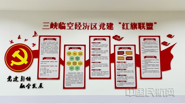 《中国民航报》、中国民航网 记者冯智君 通讯员方圳 报道: 6月23日,在猇亭云池街道党工委牵头组织下,由宜昌三峡机场党委、临空经济区相关企业及周边村(社区)党组织共同组建的三峡临空经济区党建“红旗联盟”正式成立。标志着三峡临空经济区内各企业及周边村(社区)党组织就此成为“党建共同体”、“发展共同体”、“服务共同体”、“生态共同体”,各单位将共同以“党建引领、绿色发展、共创美好生活”为宗旨,实现基层党建共抓、区域发展共商、生态环保共管、服务资源共享,全力推动猇亭绿色高质量发展。猇亭区委书记杨卫华同志担任三峡临空经济区党建“红旗联盟”指导员。