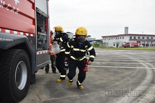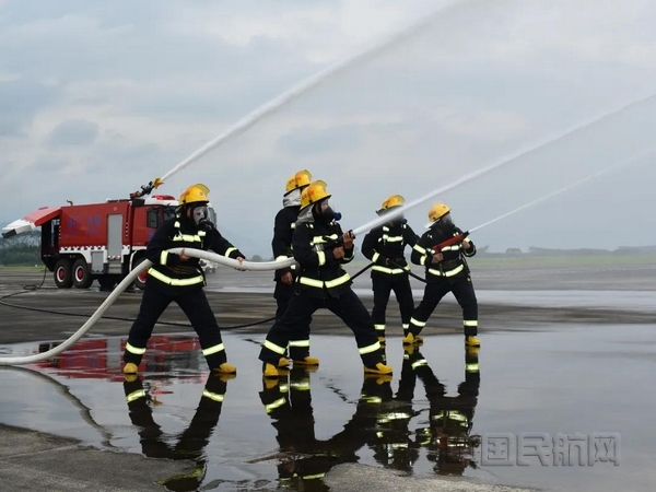此次演练模拟某航班货舱失火场景,机场消防大队接到指令后,立刻启动应急预案,出动6台消防车30名消防战斗员赶赴事故现场,严格按照作战部署,根据风向快速占据有利位置,利用消防水枪、水炮对航空器表面进行冷却,同时对廊桥和疏散通道实施保护。随后,消防战斗员根据现场形势进入货舱进行排烟、灭火、搜救,经过近10分钟的紧张扑救,航空器货舱火势被彻底扑灭,演练圆满结束。此次演练,检验了桂林机场消防人员的灭火救援综合能力和技战术水平,也检验了应急救援预案的科学性和有效性。