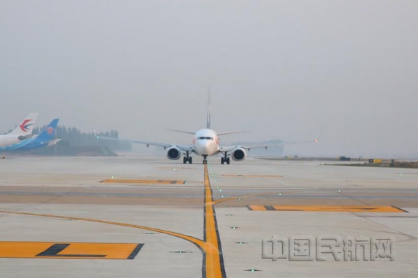 10月8日6时44分, 济南机场第二平行滑行道迎来了首位“客人”——山东航空SC4927次航班,标志着济南机场第二平行滑行道及配套站坪工程正式投入运营。该滑行道与原有的跑道、主滑行道共同构成济南机场“一跑两平滑”的跑滑体系,大大提高了跑道及机坪的运行效率。