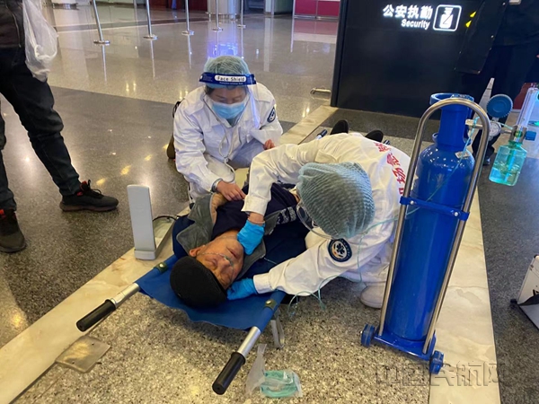 经检查,该旅客四肢无力、血压偏低、心率较慢,情况十分危急,医护人员立即给该旅客测量血压、给予吸氧、测量血糖等生命体征监测,经过紧急救护,旅客症状相对好转。在现场工作人员和热心旅客的帮助下,旅客被转移至航站楼内继续救治,同时,机场即刻联系120急救中心,开通紧急转运通道。经过各方的密切配合,该旅客最终脱离生命危险。
