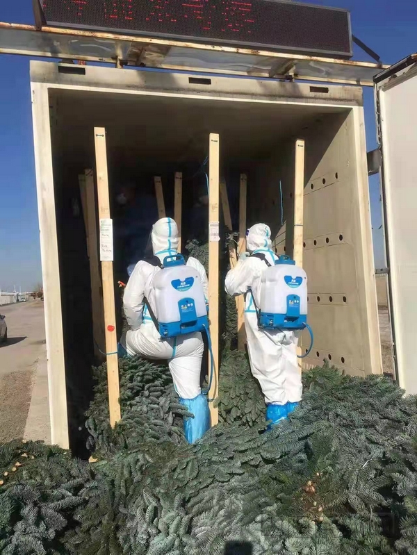 工作人员协同海关检疫部门进行消杀和标本取样
