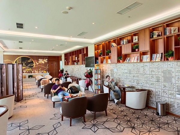 旅客在充满文化气息的环境中休息候机。(本文图片由刘依蔚拍摄)