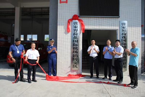 张家界机场分公司、张家界机场公安分局、张家界市消防支队、张家界空港实业分公司、南航张家界营业处、蓝天航油张家界供应站领导为张家界机场消防支队揭牌。