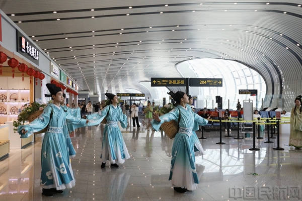 随后,网络爆火的“簪花少年”与国潮女团以快闪形式登场,活力四射的舞蹈迅速点燃现场气氛,不少旅客自发加入互动,纷纷用手机记录这些惊艳瞬间。