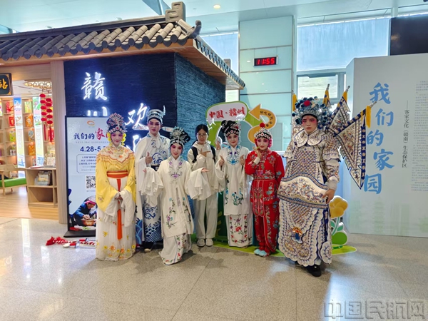 除快闪表演外,赣州机场文旅驿站同步推出“我们的家园”客家文化(赣南)生态保护区非遗传承展。以客家红、靛青等传统色调为背景,集中展示赣南13项国家级非遗和108项省级非遗精华。通过图片与文字介绍、互动问答和精美文创礼物,旅客能近距离领略赣南采茶戏、客家擂茶制作等非遗项目的独特风采,感受赣南客家文化独有的魅力。