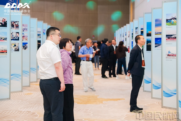 参会人员观看民用机场属地管理二十周年摄影展(本文图片均由张蒙拍摄)
