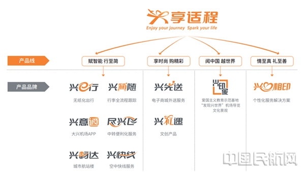 “兴e行”让旅客全流程 17 个场景无需出示纸质登机牌,轻松实现无感通关;“兴箱随”实现 34 个节点行李实时追踪,还能同步视频直播,查行李就像查快递一样方便;“兴意通”让旅客在大兴机场APP及微信小程序上即可获取从家门到舱门所需的全部交通、航班、商业等信息和服务;“尽兴飞”为通程航班提供极简流程,匹配急转保障方案,最快 20 分钟即可完成中转,结合跨航司中转产品,让中转如同直飞般顺畅;“兴快线”为旅客提供12条空中快线,实现高密度航班公交化运营,改签灵活,随到随走;“兴畅达”在草桥、涿州、廊坊三个城市航站楼,旅客都能提前办理值机托运,实现空陆交通的“无缝衔接”。