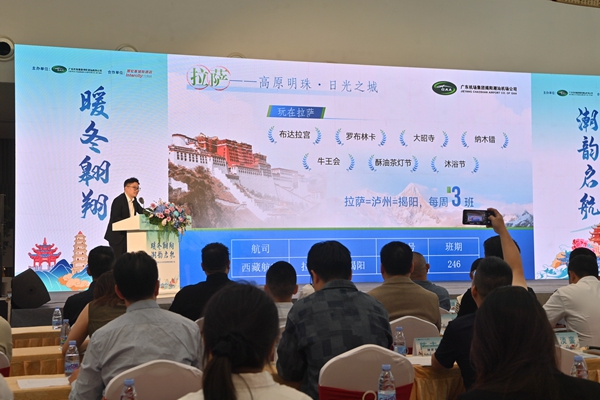 《中国民航报》、中国民航网 记者冯智君 报道:10月22日,揭阳潮汕机场公司主办的“暖冬翱翔 潮韵启航”2025年冬航季航班推介会在潮汕历史文化博览中心举行,向社会各界重磅推介新航季潮汕机场航班计划和服务产品,全景展示潮汕民航发展的新成果和新展望。汕头、揭阳、潮州三市文化广电旅游体育局及旅游协会,多家航空公司、旅行社、旅游社及销售代理人代表齐聚一堂,共话民航发展新篇。
