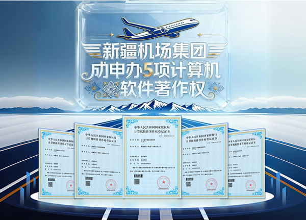 《中国民航报》、中国民航网 记者王艺超 通讯员盛浩 报道:近日,新疆机场(集团)有限责任公司成功申办5项国家计算机软件著作权,涵盖数据分析、安全监测、监管报送、运输预测及航班备降管理五大核心业务领域,标志着集团在自主创新领域实现重要突破。