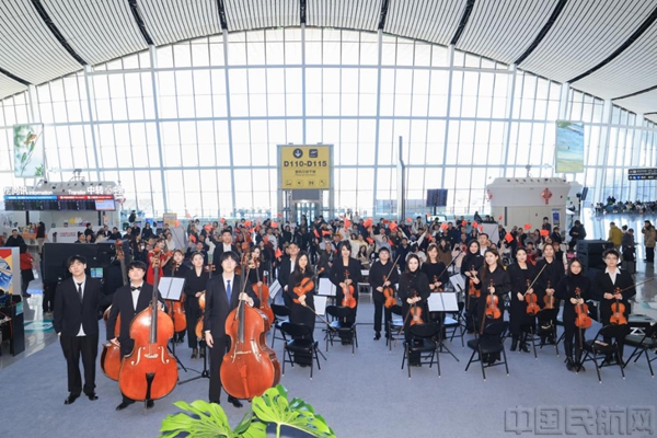 中国民航网 通讯员张弛宇、杨函泽 报道:12月31日,辞旧迎新之际,北京大兴国际机场航站楼内旋律悠扬、暖意融融。由大兴机场携手首都图书馆联合举办的“咏诵经典·乐赞北京”新年音乐会,在航站楼二层混流区音乐花园前温情启幕,让广大旅客在旅途中感受浓厚节日氛围。