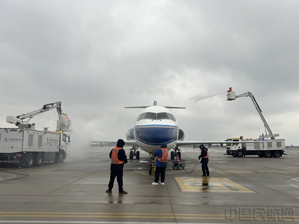 机场飞行区管理部于凌晨5时起联合第三方保障单位,对跑道、滑行道开展机械吹雪与清扫作业,持续至9时35分结束,累计出动各类车辆10台次、作业人员24人次,确保道面持续适航。机务运行部早在4时10分便开始实施航空器除冰工作,截至当日10时,机场共保障航班14架次(含出港航班7架次),累计出动除冰车28台次、人员28人次,使用Ⅰ型除冰液4吨、Ⅱ型除冰液2.8吨。