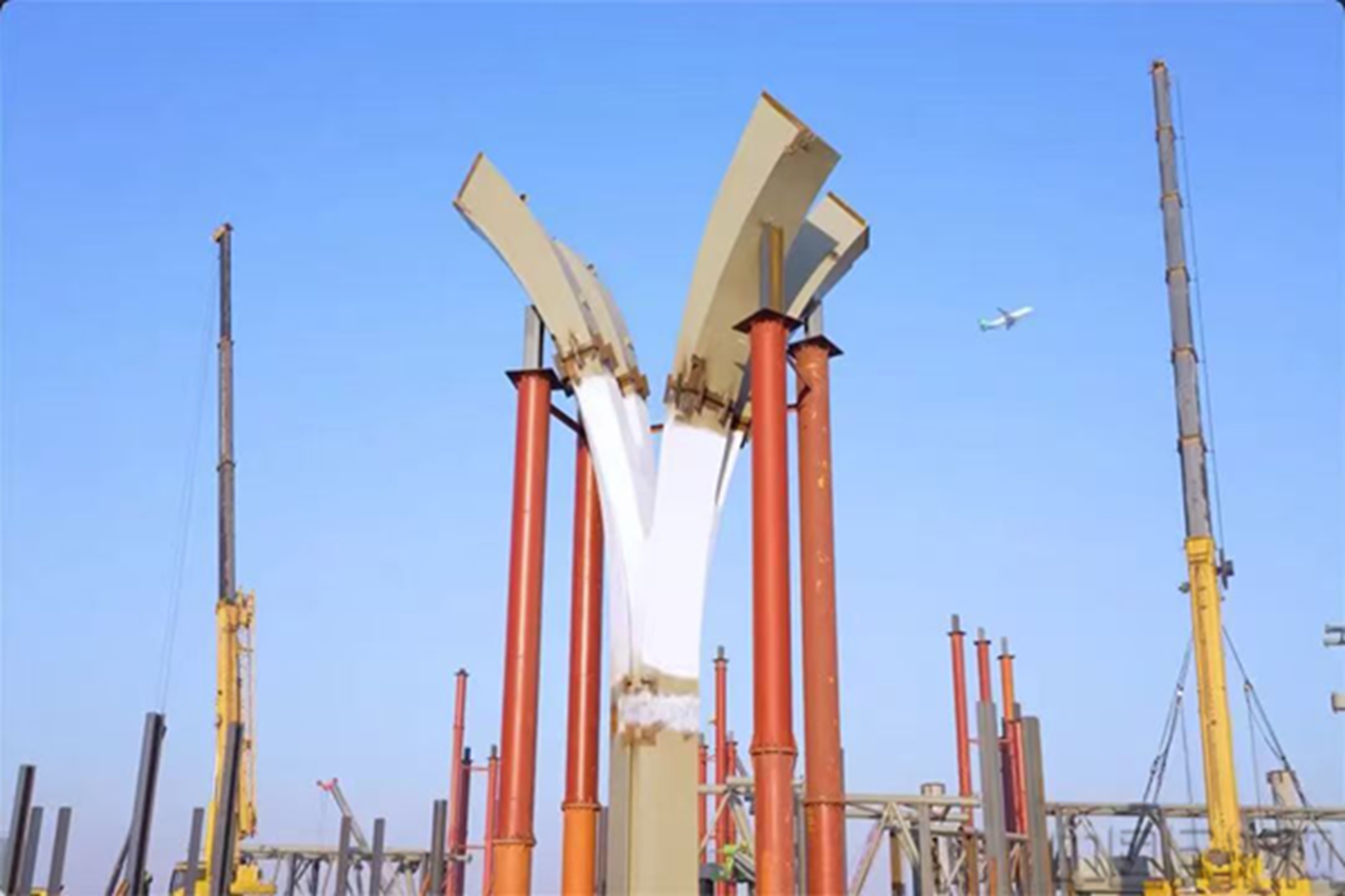 浦东T3的“飞鸟柱” 采用四分叉空间弯扭结构设计,在国内为首次应用(善见/摄)
