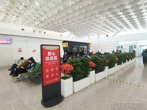 面对着回家过年、休闲旅游的旅客大潮,郑州机场与各民航保障单位全力以赴,为广大旅客提供暖心服务,郑州机场推出了郑快行、郑好飞、郑畅达、首乘无忧、捷易登机等多种出行服务产品,尤其在服务细节上更上一层楼:春节前,针对送老人、儿童等旅客家属比较多的情况,郑州机场今年春运开始后,首次在T2航站楼四层出发厅值机D岛东端设立了临时休息区,让送机的旅客在这里安静一会,等到亲朋好友乘坐的飞机起飞了就可以放心离去。