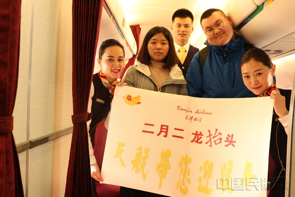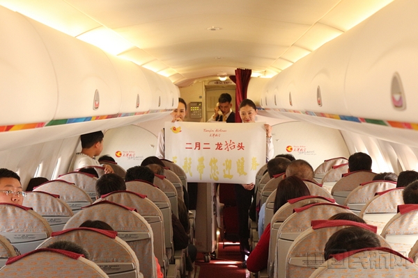 中国民航网 通讯员张华 报道:2月27日,是农历二月初二,也是我国传统节日龙抬头。这一天,在天津航空GS6673次从呼和浩特飞往通辽的航班上,天航工作人员开展了以“二月二龙抬头 天航带您迎暖春”为主题的机上活动,给旅客带去了一次难忘的空中体验。