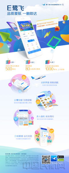中国民航网 通讯员贺立鹏、陈皙 报道:3月30日,厦航自主研发的新版手机客户端——厦航“E鹭飞”正式上线。