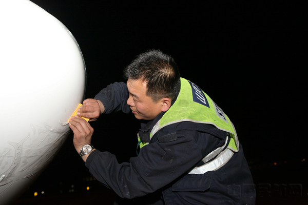 机务人员正为远道而来的新飞机进行“面部护理”