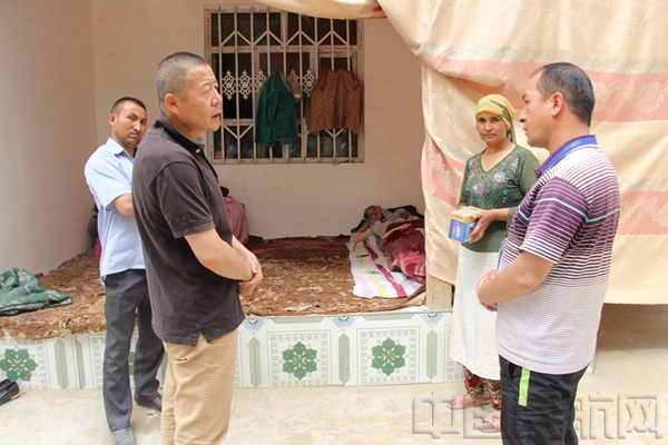 此事还要从5月27日说起,在村干部反馈入户走访情况时,会计阿布力孜·麦合素提汇报他在走访包联户图罕·托合提老人时,发现老人在家卧床不起,生活不能自理,询问后得知老人患有肺结核,家里就自己一人,没人照料。得知此信息后,南航驻村工作队队长杨亚东非常重视,立即去看望老人。