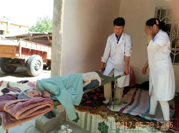 5月29日,乡卫生院如约来到老人家,在村干部的协助下,将老人顺利接进了卫生院。得知这个好消息,杨亚东非常高兴。5月31日,杨亚东冒雨来到巴扎,买了些水果来卫生院看望老人,得知老人的病情已经好转时,大家一直悬着的心才稍稍放下。