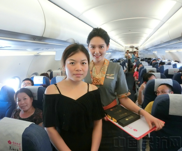 昨日,乘务组在登机后便开始布置客舱,希望为旅客们营造一个整洁舒适的乘机环境。旅客步入客舱后,更是被焕然一新的客舱环境和乘务员饱满的热情深深感染,并对此次首航活动充满了期待。