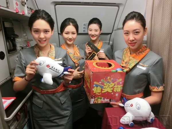 "女士们先生们,青岛航空天海之韵常旅客会员俱乐部于2017年1月1日起成立。在今天的首航航班中,我们诚邀您加入天海之韵常旅客俱乐部,尊享更多会员权益。此外,凡是今日办理入会的旅客,还可参与到稍后的抽奖环节中,各类精美大奖等您拿!"。在乘务员甜美的广播声中,此次会员招募环节也拉开帷幕。在主持人的带动下,客舱气氛也愈发热烈。在接下来的会员抽奖环节中,乘务员为胜出的旅客送上了精美大奖及真挚的祝福。与此同时,旅客也表示:每次乘坐青航的航班都能感受到别样的温暖,在南昌至珠海首航之际,也祝愿青航的发展越来越好,飞的越来越高!