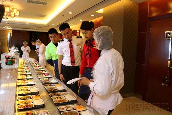 中国民航网 通讯员杨光 报道: 2017年9月10日,云南红土航空股份有限公司(以下简称“红航”)即将完成首架两舱飞机改造。为着力打造“互联网+”精品航空,提高旅客餐食满意度,从细节展现真情服务,2017年9月8日,由红航常务副总裁和志辉带队,飞行部、客舱部、保卫部、地服部、品牌办一行赴云南空港航空食品有限公司开展选餐及调研工作。