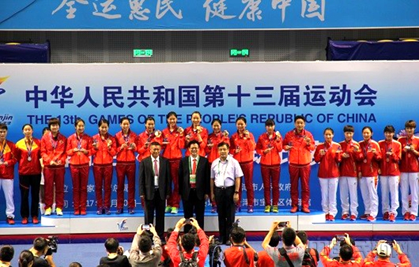 作为第十三届全运会羽毛球项目比赛的冠名商,天津航空总裁吴浩及工会主席文戈作为颁奖嘉宾先后为女团、男团冠军江苏队和北京队、男单优胜选手林丹颁奖。