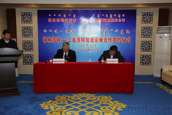 根据国家“一带一路”倡议及“向北开放”的发展需要,结合锡林郭勒盟航业空务快速增长的实际,在盟行署、发改委以及锡林浩特机场公司的共同努力下,相关部门同志多次到新疆等地实地考察,就引进新疆通用航空公司运营锡林浩特至二连浩特航线事宜进行多次商洽。2017年9月锡林郭勒盟与新疆通航公司顺利达成《合作备忘录》,12月1日起,锡林浩特、二连浩特两地间正式开通短途运输飞行。该航线主要面向行政、商务人员以及旅游包机等。