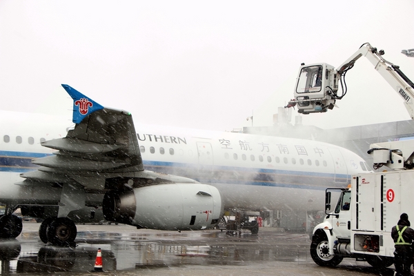 机务正在除雪(程佳奇 摄)