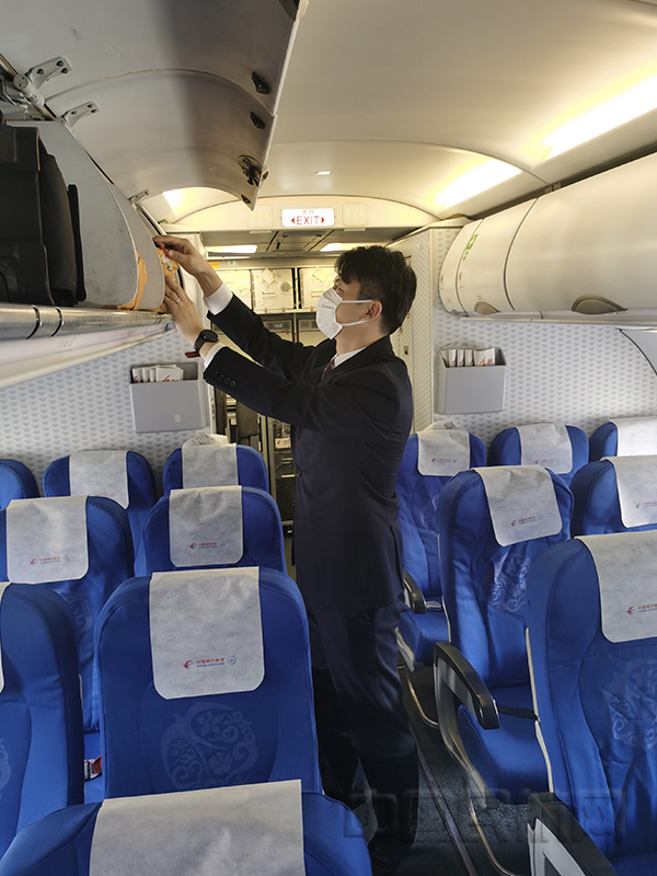 中国民航网 通讯员杨帅、沙龙、孙鹏 报道:岳辉是东航安徽分公司的一名安全员,负责航班上的安全保卫工作。2020年1月24日农历除夕,他和平常一样整理行装后亲吻了还在睡梦中的孩子,拖起飞行箱走出了家门,这是他参加工作后的第17个春运。这个春运不平常。疫情的蔓延,让航班生产也受到了严重的影响。东航针对疫情制定了很多措施,对安全保卫的工作也进行了调整。为做好航班客舱安全和防护工作,东航安徽保卫部安全员,全部佩戴口罩执行航班任务,在客舱安全检查时做好卫生防护。飞行中,时刻关注旅客,及时防范各类风险和机上突发事件。