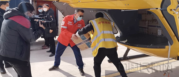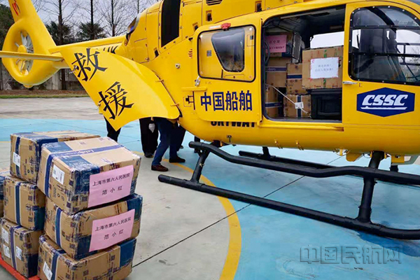 2月9日上午8:11,上海金桥直升机基地,随着直升机螺旋桨的声音越传越远,中国船舶防控抗疫航空救援飞行队携社会各界捐赠给湖北武汉疫区的防护物资,冲上云霄。数小时后,这批1.2吨的物资送达武汉,驰援抗疫一线。