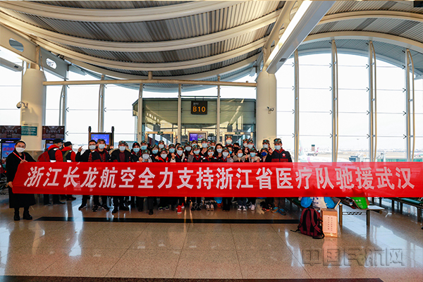 在浙江省和杭州市各级政府的大力支持下,在民航浙江监管局的现场指导和杭州萧山机场的全力配合下,浙江长龙航空公司立即成立保障小组,迅速召开保障工作会议并制定详细可行的工作预案,运控、飞行、乘务、保卫、机务、地服、货运等各部门紧密配合,选派精干机组,安排好技术状态最佳的飞机待命,并对飞机内外进行仔细消毒,飞行过程中为医疗队成员提供温馨舒适的客舱服务。同时,公司还在目的地机场提前做好地面服务保障的相关准备工作,为医疗战士奔赴武汉前线提供了有力保障。