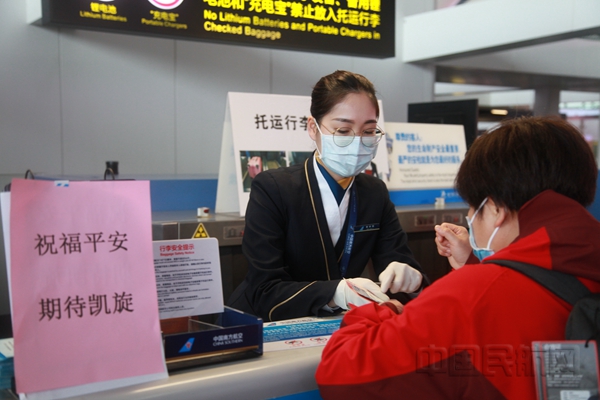 接到民航局关于运输广西医疗队前往十堰的航班任务后,南航迅速行动,第一时间制定飞行保障方案,挑选技术过硬的党员干部组成包机机组,运行、地面等多部门联动,全力保障。在南宁吴圩国际机场T2航站楼,南航开辟8个专用柜台为医疗队办理乘机手续,安排专人引导医疗团队快速登机,以最快速度装运7.3吨医疗物资及行李。南航在值机柜台、登机口等区域张贴着“祝福平安 期待凯旋”的祝福语,为医疗队员加油鼓劲。16时05分,航班起飞前往十堰,航班于17时48分落地。