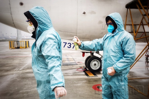 东航员工做好消毒防护